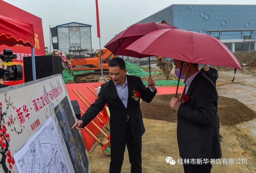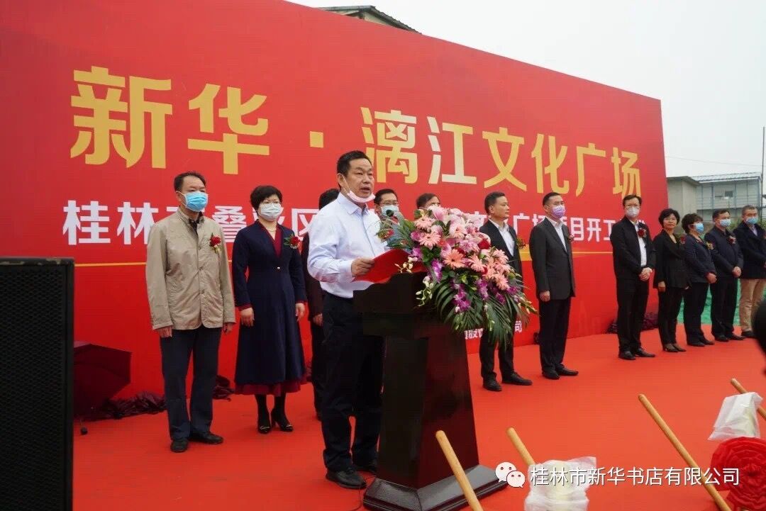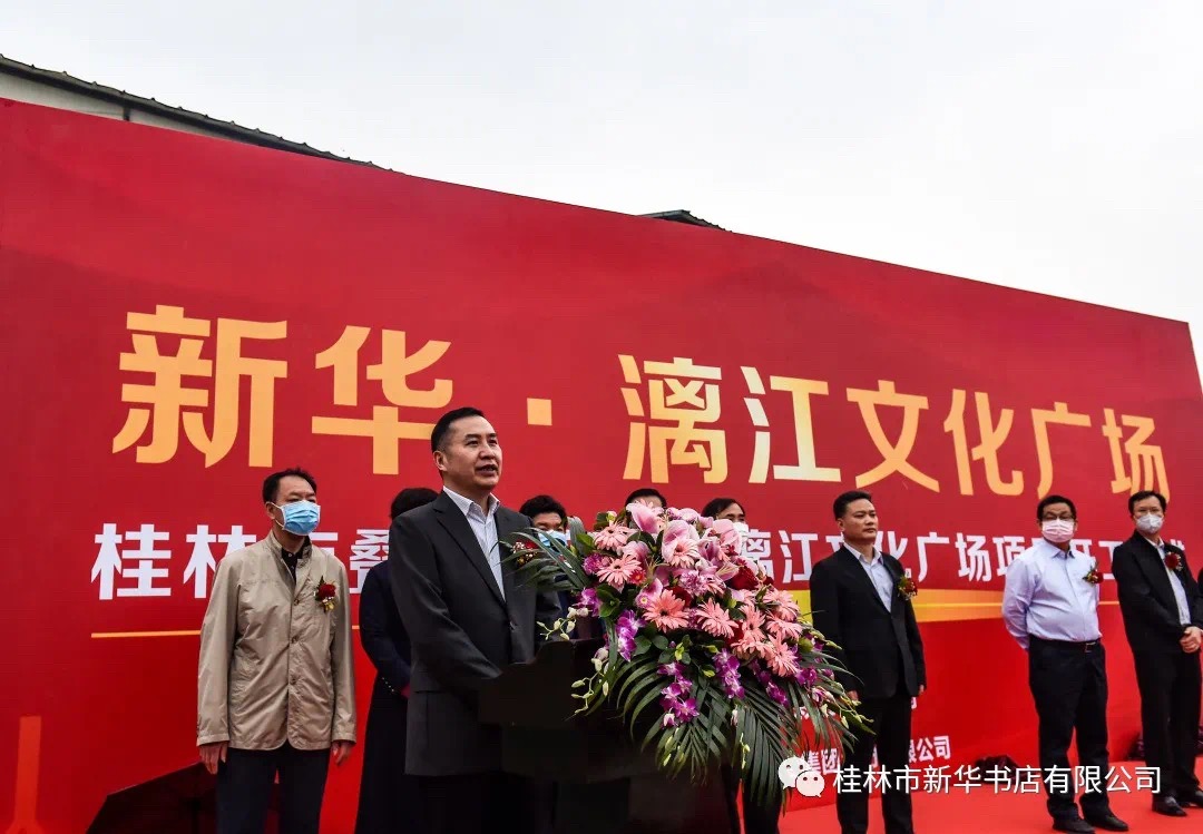 上午9时,向润华代表项目投资方广西新华书店集团股份有限公司在开工仪式上致辞。他说,项目的奠基开工是桂林市文化建设和精神建设的一件大喜事,更是广西新华书店集团深化全民阅读活动推广及推进产业发展的一件大实事,广西出版传媒集团坚决支持新华书店集团做好这一项目。该项目规划总占地约32.3亩,预算总投资2.85亿元,总建筑面积约4.95万平方米,拟建设一个以图书载体为平台,集“阅读交流、创意展示、聚会休闲、创意生活”功能为一体,品种全、专业化、体验式的城市文化生活中心,致力于打造成为广西第一个真正意义上的文化消费综合体,广西最大、最时尚的书城,引领优雅、智慧和正能量的阅读风尚,成为推动桂林全民阅读的主阵地,更好地满足人民日益增长的美好生活需要,促使桂林市公共文化服务平台建设再上新台阶。