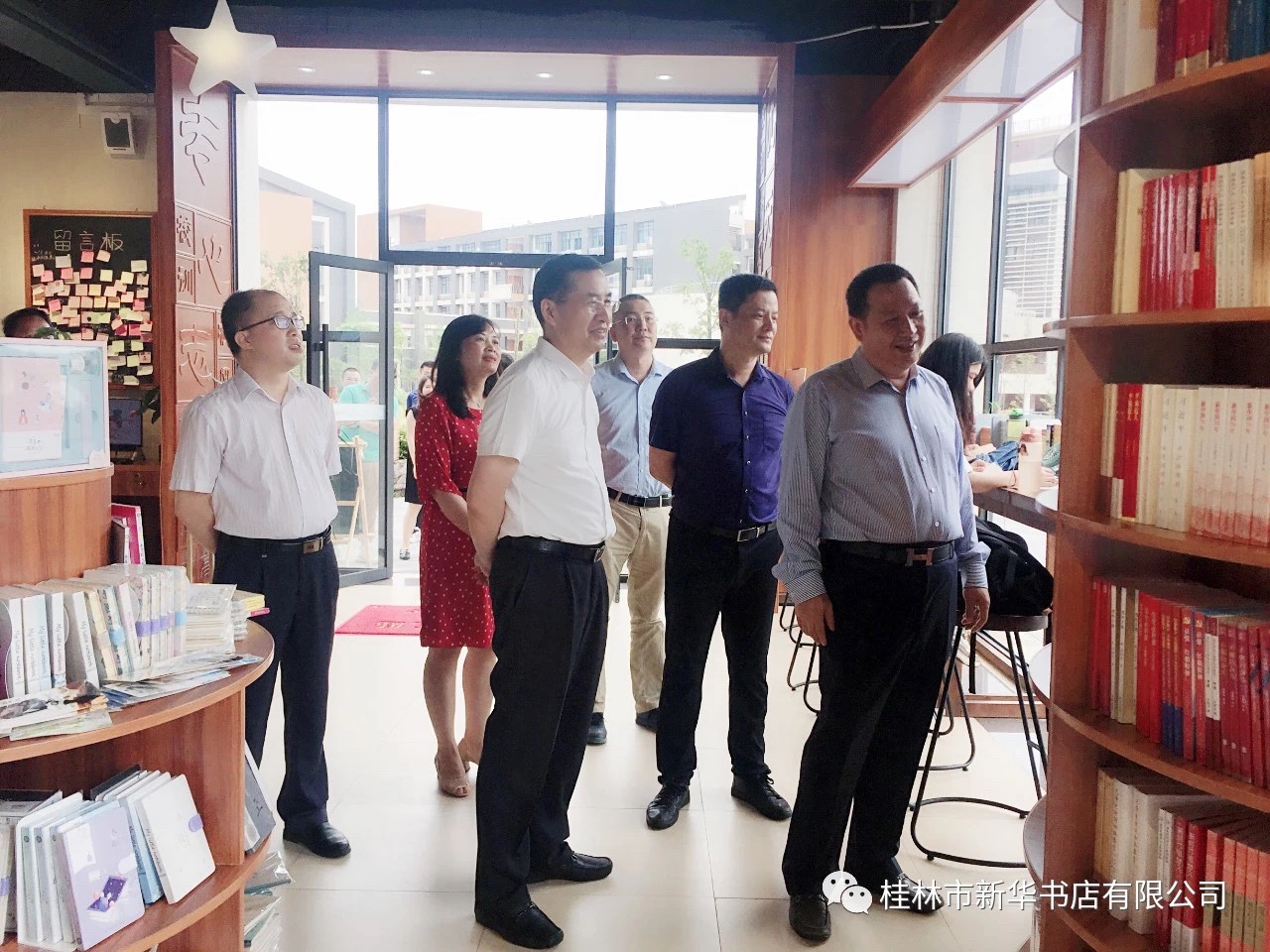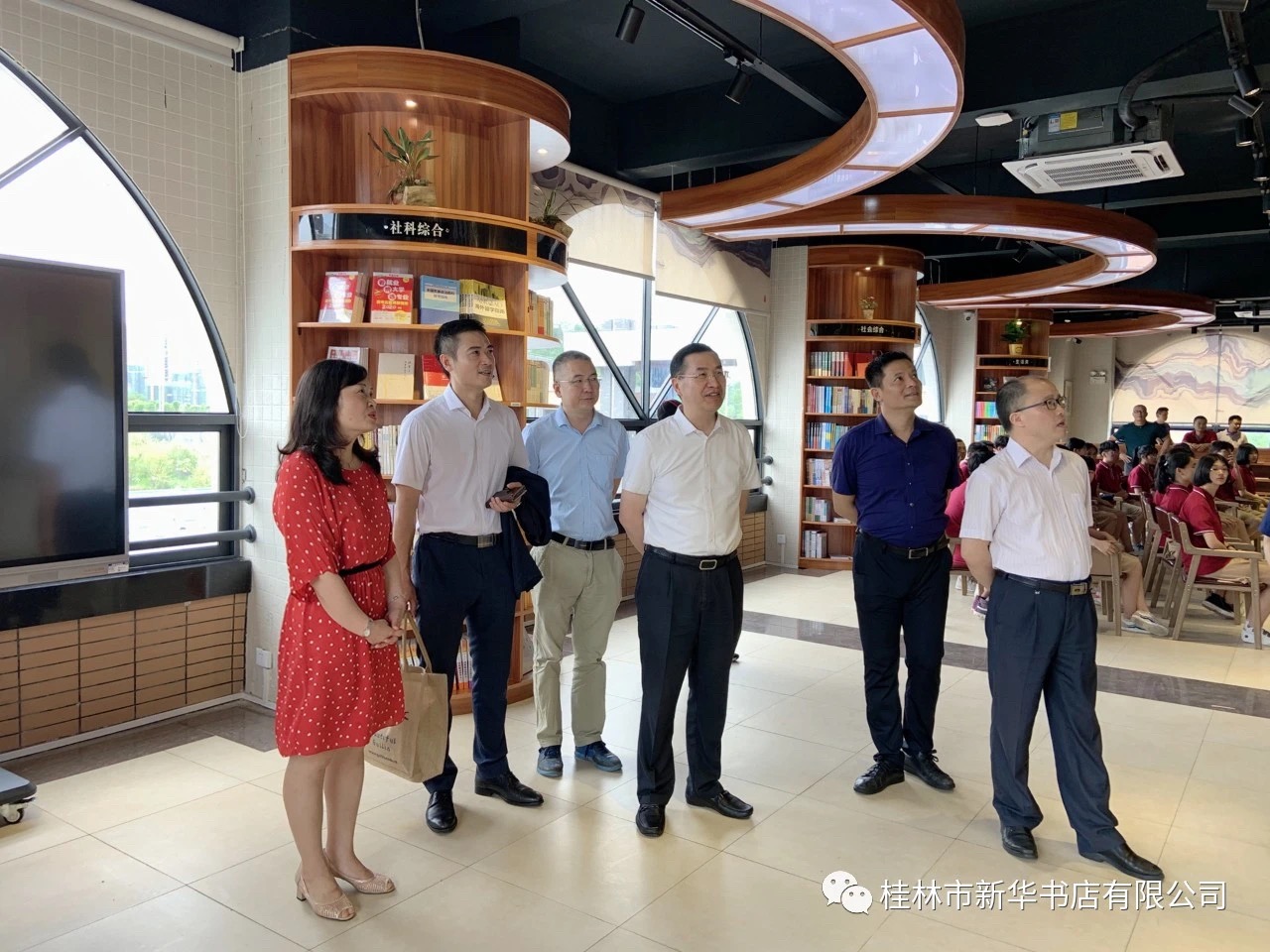 桂林市教育局副局长陈念进、华为公司广西企业业务部总经理沈秀松、桂林中学马劲校长等出席座谈会,桂林市新华书店有限公司总经理黄继军、副总经理陆丽芳陪同参观。雷声副市长一行刚走进书店,就对扑面而来的浓郁书香、茶香、咖啡香大加赞赏,对阅读中心温馨舒适的阅读体验环境、丰富的图书陈列品种及多元化服务给予充分肯定。