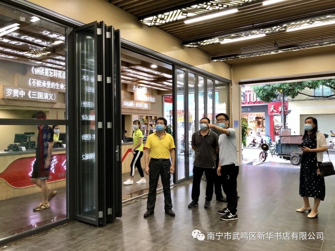 6月15日,广西出版传媒集团有限公司党委委员、董事、常务副总经理韦家武,经营管理部主任钱宗华一行莅临武鸣区新华书店壮乡书城对安全生产消防工作进行检查督导。武鸣区新华书店何贵江经理、潘海松副经理、王政远副经理等相关工作人员陪同检查。