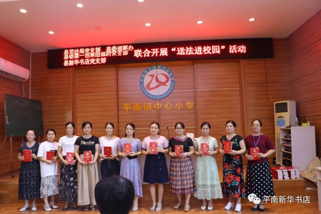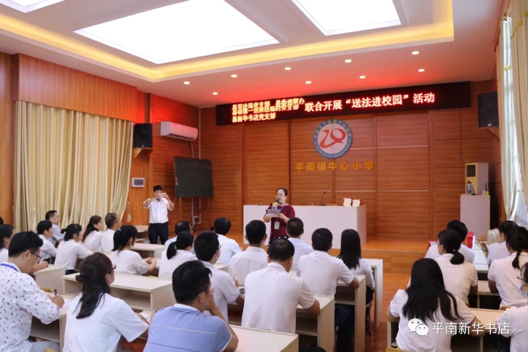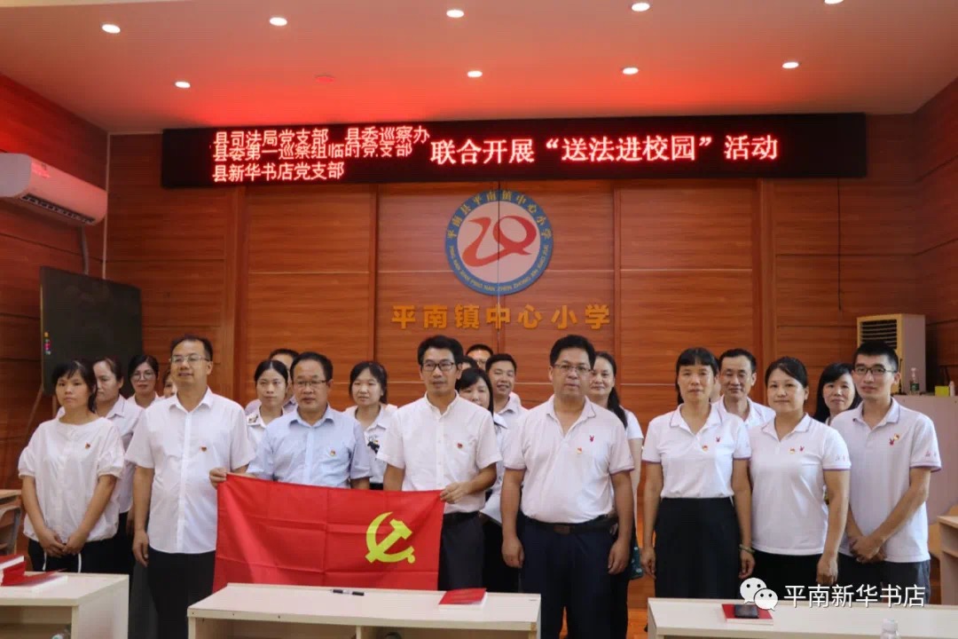 为深入贯彻落实“七五”普法规划,扎实推进“法律进校园”活动,努力提升平南县依法治校水平,7月13日下午,平南县司法局党支部、平南县委第一巡察组临时党支部、平南县新华书店有限公司党支部走进平南镇中心小学,携手联合开展“送法进校园”活动,为学校教职工开展学习《民法典》普法宣讲,美丽的校园盈满了浓浓的法治情。平南县司法局党支部、平南县委第一巡察组临时党支部、平南县新华书店有限公司党支部党员及平南镇小全体教职工共 200 多人参加了活动。