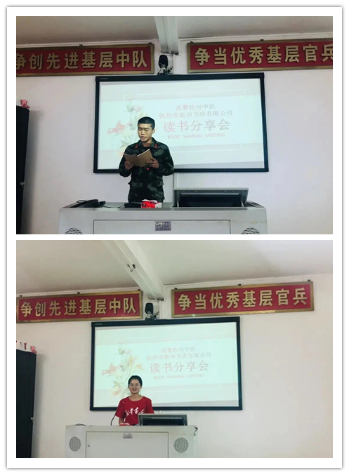 活动当天,钦州市新华书店有限公司员工和武警官兵们进行了读书感悟交流,共叙军民鱼水情。在读书分享会上,大家积极参与、情绪高涨,纷纷将自身感触最深的书籍、文章及深刻的读书心得体会拿出来分享,现场气氛热烈、掌声不断,精彩的读书分享会让在座的每一个人都收获颇丰。