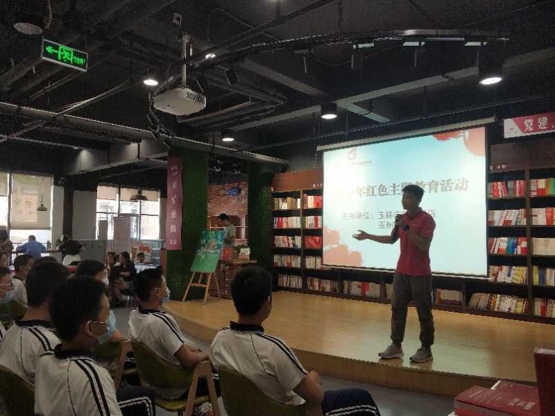 暑假期间,玉林市新华书店开展“青少年红色主题教育活动——走进新华书店”,以听新华人讲新华史,观看新华书店纪录片,谈谈我和新华书店的故事等形式,通过一帧帧可歌可泣的英雄人物简介、一张张珍贵老相片和一幕幕场景再现,引导青少年了解那段深沉而辉煌的历史,感受中国共产党人勇往向前的革命精神和坚定不移的革命信念,重温新中国发展的欣欣向荣。