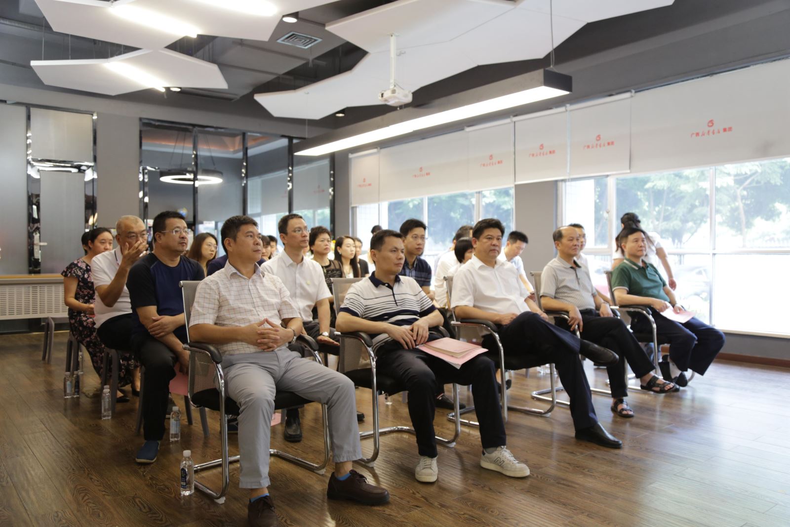 集团股份公司领导班子成员,总部各部门、在邕子公司负责人,文盛公司经营管理班子成员及职工代表、工作人员合影