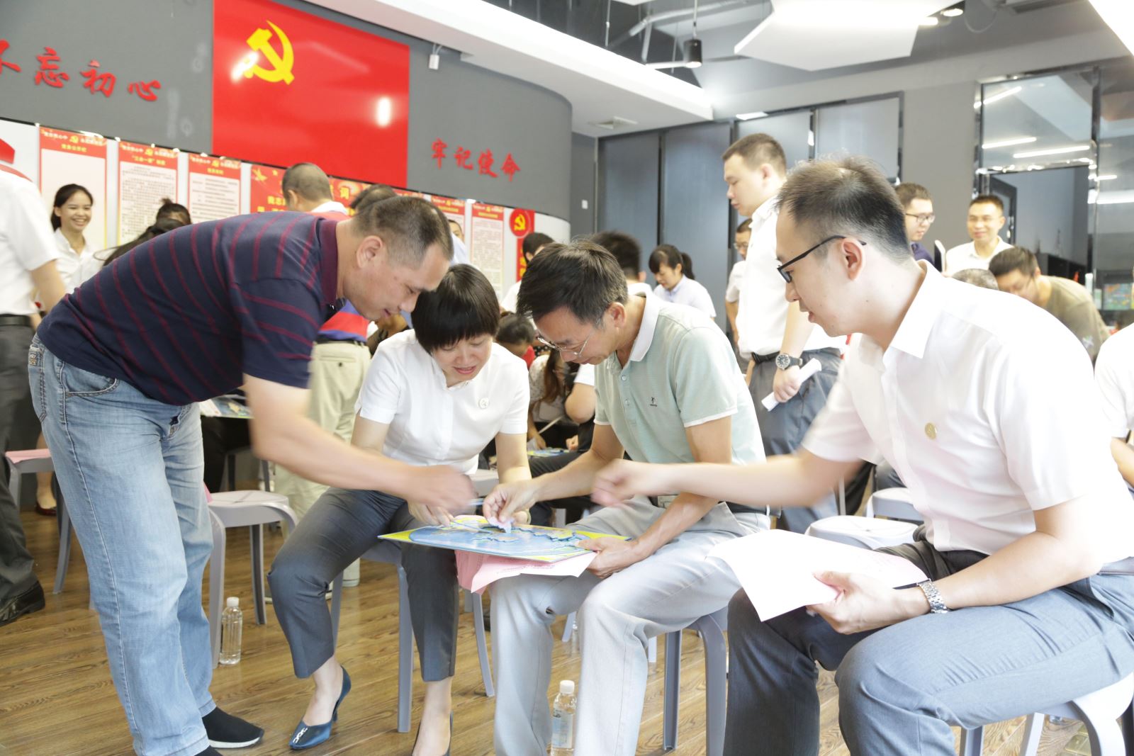 开馆仪式结束后,以“百年大变局的观察与思考——共读《百年大变局》”为主题的新华悦读馆第一期线下悦读会即时开启,分享《百年大变局》、世界局势认知互动游戏、观看解读视频、员工代表朗读重点章节、总结阅读心得、书写阅读“行动计划”等环节精彩呈现,现场氛围十分热烈。