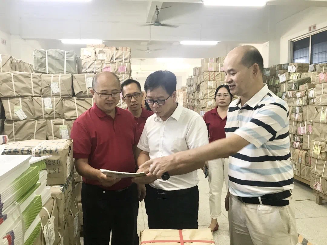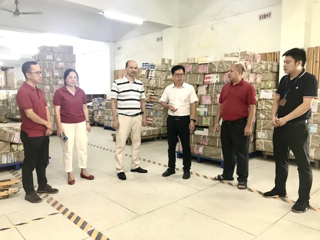 童谦平一行首先来到该公司仓库,实地了解中小学教材教辅入库及分发工作情况,并对该公司“课前到书,人手一册”任务顺利完成给予了充分的肯定。