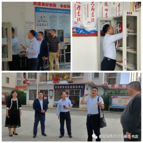 随后,周处长一行到都安县仙琅扶贫移民社区、城北扶贫移民社区、高岭镇益犁社区督导2020年农家书屋图书补充更新及配套设施的配送工作。每到一个地方,周处长都详细了解社区人口、图书的借阅情况、配套的书柜、图书的陈列、分类等。特别对都安县仙琅扶贫移民区的农家书屋给予充分的肯定,他指出,自治区党委宣传部对全区农家书屋实施出版物补充更新,是列入自治区人民政府为民办实事的一项重要工作,是满足基层群众与时俱进的文化需求,是加强基层公共文化建设的重要抓手,各相关部门要高度重视真正落实到实处。陪同调研督导的都安县县委宣传部副部长韦崇凯也向周处长反映了农家书屋管理存在一些的困难,周处长表示回去后整理相关调研材料,力争解决基层的具体困难。