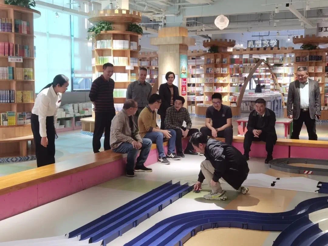 ,各位领导参观了各楼层区域图书陈列分类、活动策划等情况,特别详细了解了迷你四驱车项目的经营情况,对该项目表现出浓厚的兴趣。
