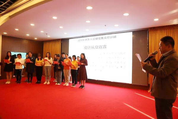随后,林慧南总会计师带领2020年新入职的财务人员进行“会计从业宣言”仪式。通过宣誓,进一步明确责任,强化意识,为更好地成为积极工作,努力学习,廉洁从业的会计从业人员指明方向。