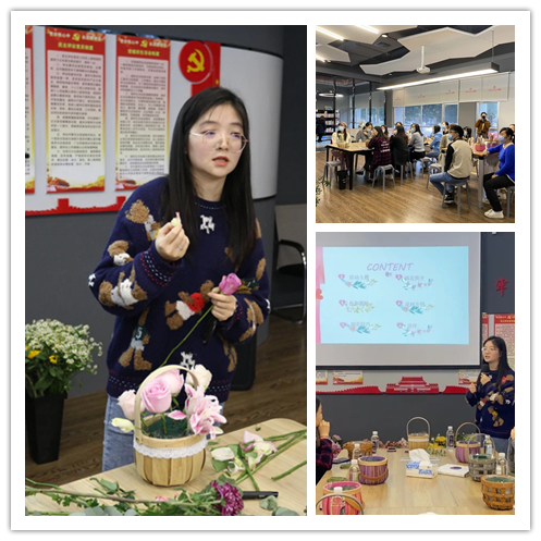 紧接着,国家级高级花卉园艺师进行了花艺知识介绍,仔细讲解花卉搭配、色彩搭配、手法技巧等常用知识,干货满满,职工们纷纷表示收获颇多。