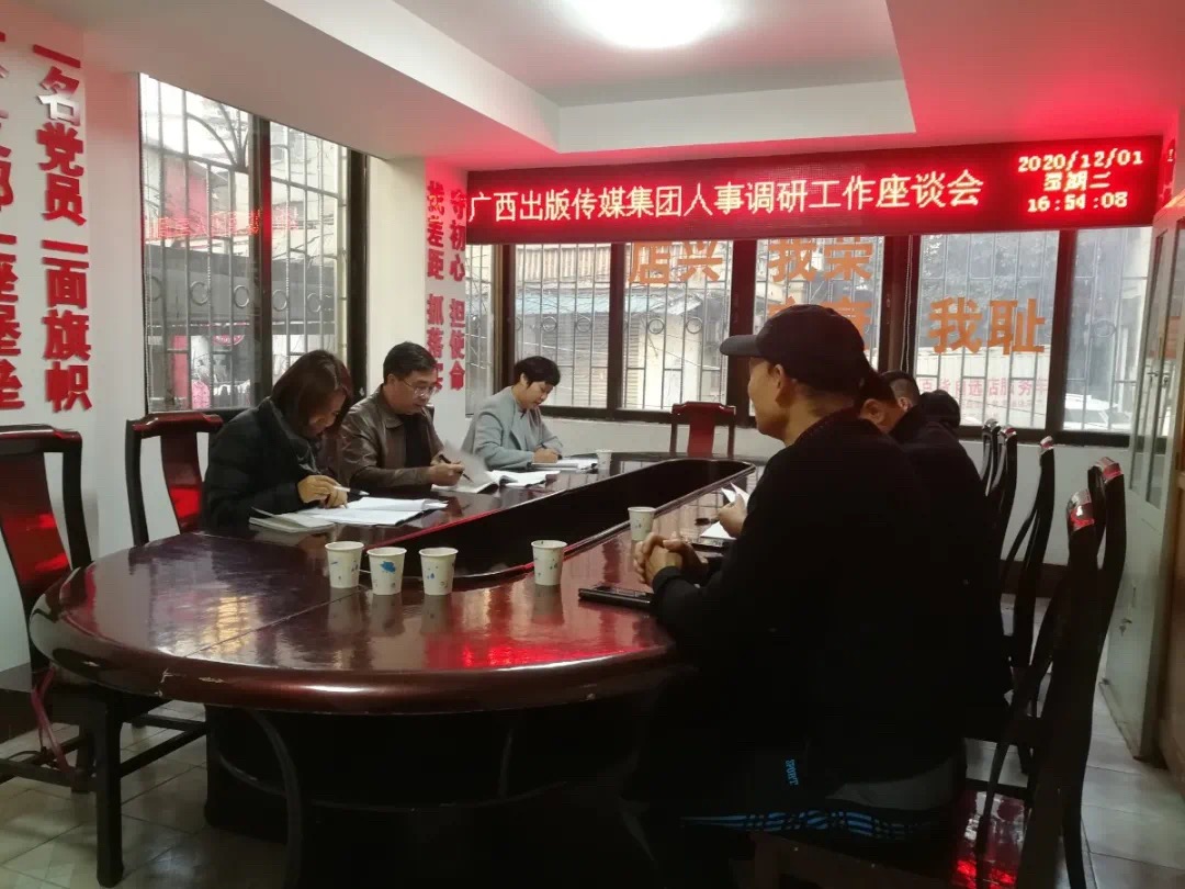 11月30日至12月2日,广西出版传媒集团办公室主任、人力资源部主任刘红卉一行到柳州市新华书店有限公司(以下简称柳州市公司)调研指导人力资源工作。广西出版传媒集团人力资源部副主任张涛,广西新华书店集团股份有限公司人力资源部主任莫莉球、副主任黄然陪同调研。