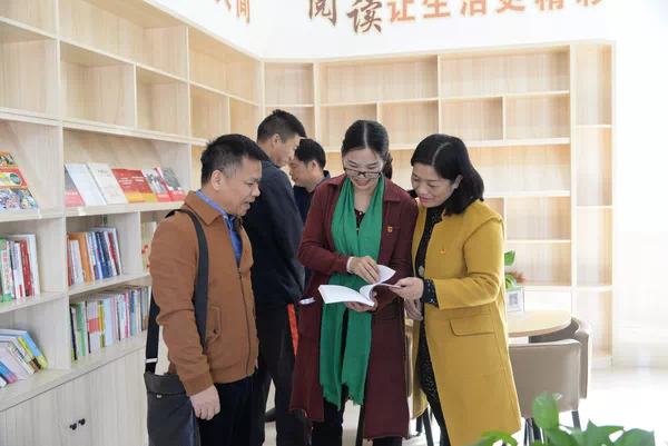 捐赠活动现场,钦北区鸿亭街道办领导首先向钦州市新华书店有限公司详细介绍了山塘社区的各项日常工作,并共同参观了社区内文化活动中心、阅览中心、心理辅导室等基础设施,这些基础设施极大地丰富了社区居民的业余文化生活。