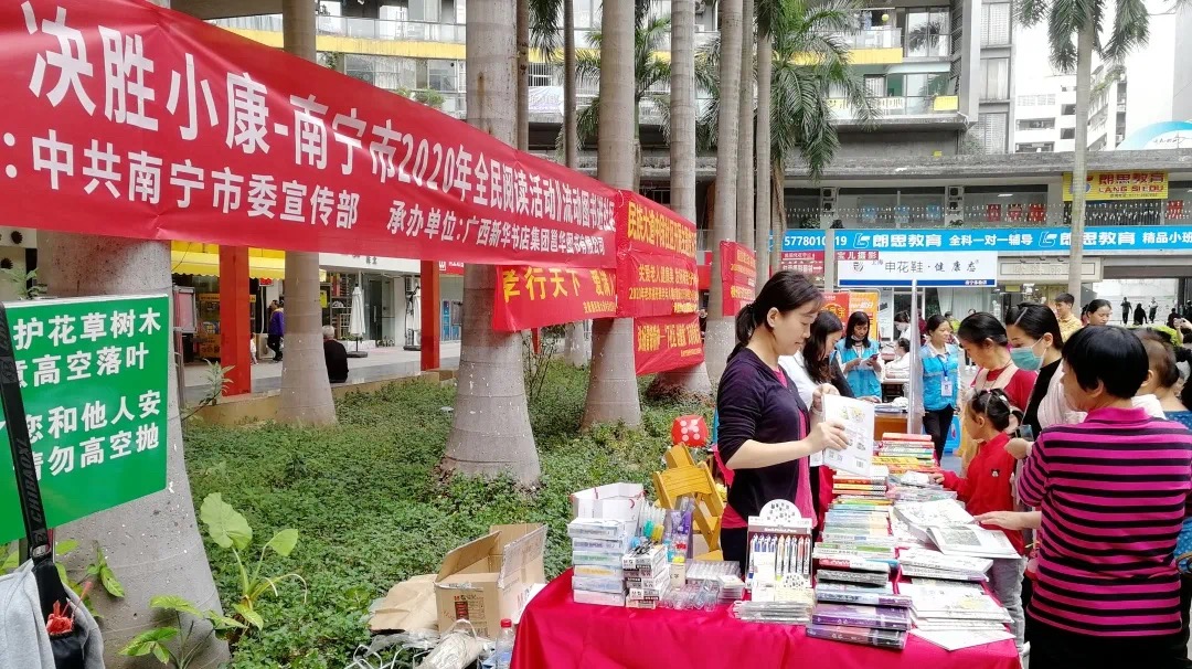 为贯彻落实党中央、国务院关于全民阅读的工作部署,贯彻实施《全民阅读“十三五”时期发展规划》,在中共南宁市委宣传部《“阅读圆梦·决胜小康”-南宁市2020年全民阅读活动方案》(以下简称“方案”)的指导下,广西邕华图书有限公司(以下简称“邕华公司”)按照方案中的重点活动安排,深入基层、深入群众,开展了全民阅读“七进”工作,通过活动大力推广全民阅读,进一步倡导全民阅读社会风尚,在推动地方全民阅读、创建八桂书香中起到了积极的作用,发挥了主渠道作用并主动创新,首次实现全民阅读全覆盖。
