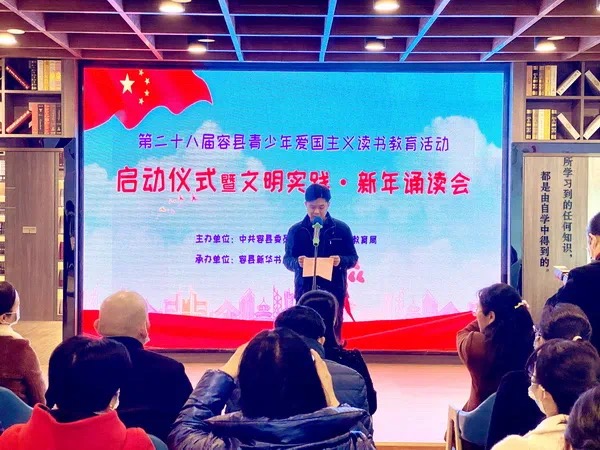 1月15日上午,由中共容县委员会宣传部、容县教育局主办,容县新华书店有限公司承办的第二十八届容县青少年爱国主义读书教育活动启动仪式暨文明实践・新年诵读会在容县新华书店购书中心举行。