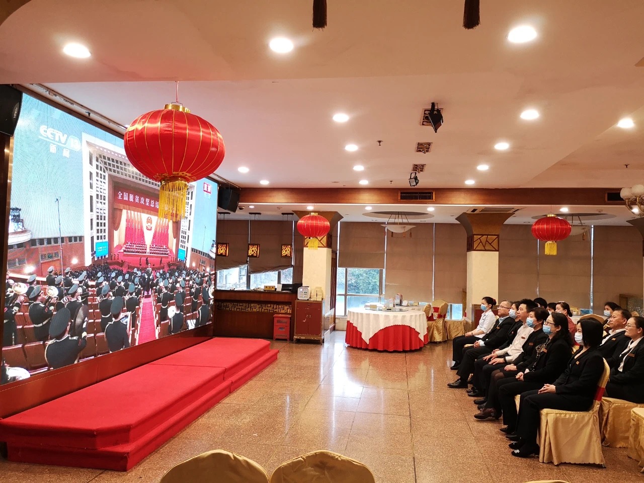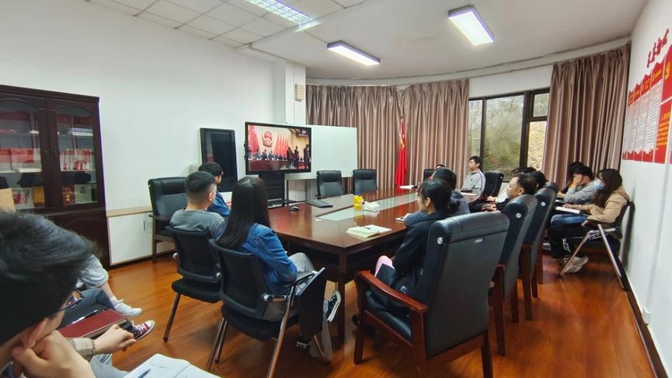 广西新华大酒店干部职工观看视频直播