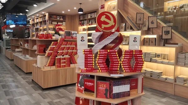 在天等县公司经理赵志军的引领下,郭强部长走进了耳目一新的新门店。影入郭强部长眼里的是展台上醒目的用红白相间“红色传承”主题的重点图书摆设一个“100”的图书造型,在“100”造型正中央摆置着一个大而鲜艳的党徽,其寓意是纪念中国共产党建党100周年。郭强部长随手拿起一本书,正是天等县委宣传部刚下文由新华书店去做宣传征订的《论党的宣传思想工作》。他指出:党的宣传思想工作是建设社会主义的重要部分,新华书店有着做宣传工作的光荣历史,是党的宣传思想重要的窗口,要勇于肩负起这项工作。接着,郭强部长走过桂版图书类陈列区,新华水吧,走上二楼,驻步在社会科学类图书区,郭强部长对门市把政治类图书放在最显眼最重要的位置表示赞赏。他说:“今年是建党100周年,要将建党题材、内容的图书专门用一个大型展台来展示,通过多渠道、多层次的活动,营造温馨舒适的文化环境,引导社会各界读者聚焦党和国家的发展历程,形成学习党史、坚定党性、弘扬党风的良好氛围。”最后郭强部长走进三楼的多功能活动会议厅,这里的正中央设置一块5米宽的大屏幕,高级音响配置,能容纳50个座位。郭强部长指出,要充分利用资源,吸引社会有利因素,利用活动大厅开办讲学、学术研讨、上党课等,让更多的读者了解和喜欢这个优雅的购书环境和阅读环境,为推动天等县全民阅读活动搭建更为便捷的平台。