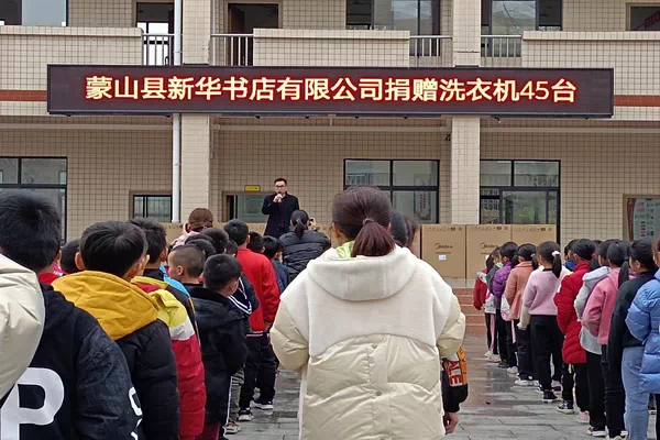 2021年3月11日,为了让学生们能够感受到人间温情,蒙山县新华书店有限公司在蒙山县黄村镇中心小学开展“爱心捐赠,情暖校园”的捐赠活动。蒙山县教育局副局长胡锦华、蒙山县新华书店有限公司副经理龚星、黄村镇中心小学校长李业莲及全校师生参加了本次活动。此次活动给蒙山县黄村镇中心小学的孩子们带来了深情、带来了关爱、带来了希望,为在校寄宿生活的学生捐赠洗衣机45台供学生们使用,为学生们解决了生活上的实际困难,使他们在学习的同时感受到家的温暖,给予孩子们父母般的关爱。