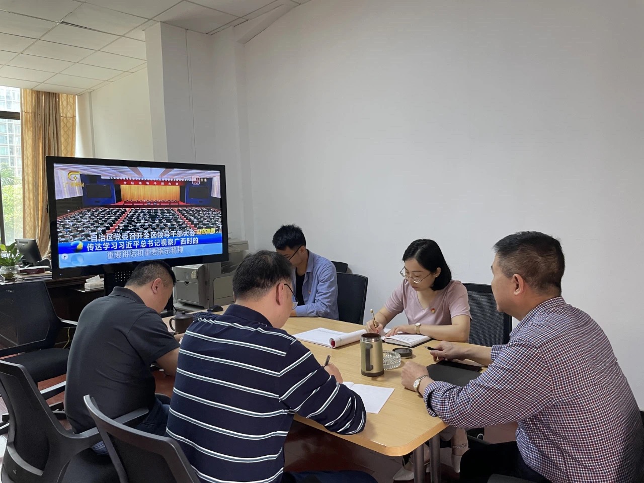 会议由机关第二党支部书记周小青主持,周小青书记首先传达了习近平总书记视察广西工作的重要指示精神,随后与会人员通过看视频的方式学习了重要讲话精神。通过学习,同志们备受鼓舞,纷纷表示我们一定要认真贯彻落实习近平总书记的重要讲话精神,不忘初心使命,坚定理想信念,立足本职岗位,切实把学习成效转化为工作动力,为集团股份公司的发展不断贡献力量,以优异成绩向建党100周年献礼。