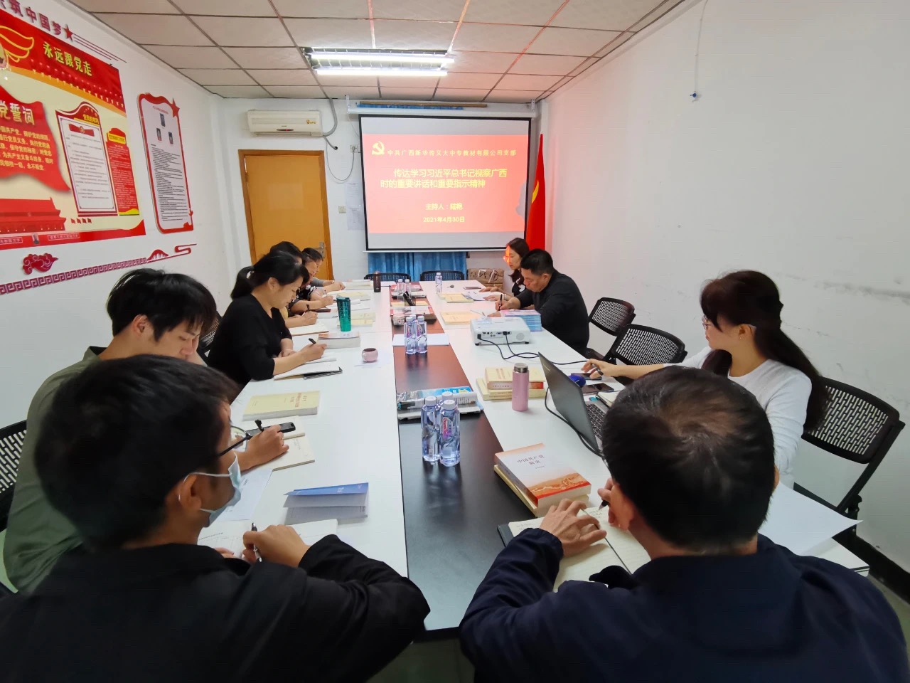 5月10日上午,广西邕华图书有限公司(以下简称邕华公司)党支部召开会议传达学习习近平总书记视察广西时的重要讲话和重要指示精神,部署深入学习宣传贯彻习近平总书记重要讲话精神。会议由支部书记龙江主持。会上,支部纪检委员杨艳霞先给全体党员介绍了习近平总书记在广西视察的总体情况,随后全体党员集体学习了习近平总书记在广西各地考察时分别做出的重要指示精神。