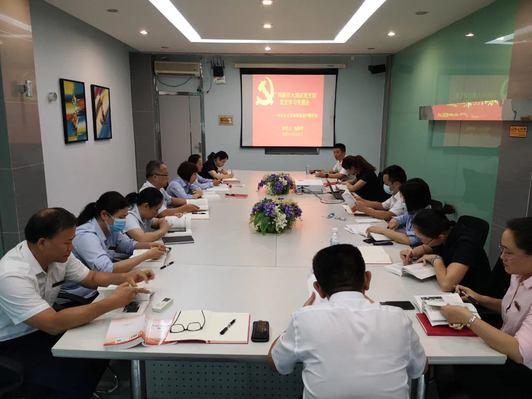 5月31日下午,广西新华大酒店党支部党员、入党积极分子、酒店各部管理人员集中专题学习社会主义革命和建设时期历史。由支部书记杨勇军领学。