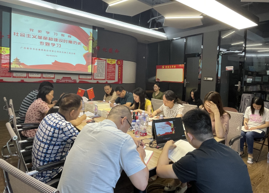 5月28日下午,广西新华传文大中专教材有限公司党支部组织全体党员开展社会主义革命和建设时期历史专题学习。会议由党支部书记陆艳主持。
