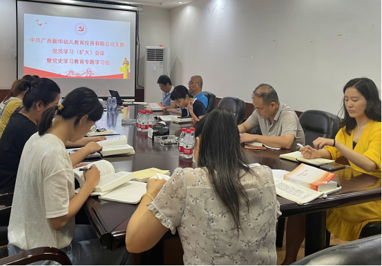 5月25日,广西新华幼儿教育投资有限公司(以下简称幼教公司)党支部开展社会主义革命和建设时期历史专题学习。幼教公司党支部全体党员、入党积极分子,以及幼教公司、出版公司及图书进出口公司干部职工参加了会议。