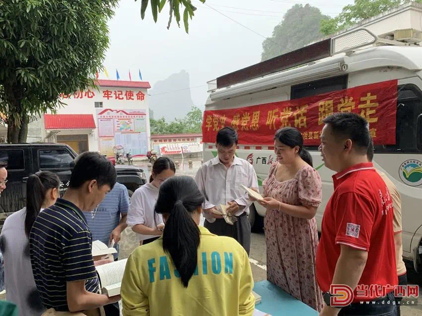 都安瑶族自治县新华书店党史学习流动图书车开进东庙乡政府