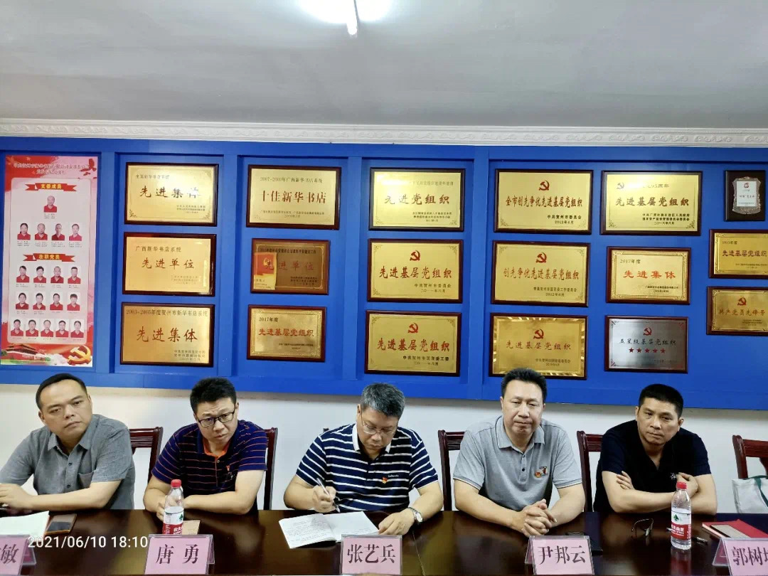 6月10日,广西出版传媒集团总编辑、党史学习教育宣讲团第十一小组组长张艺兵和党群工作部主任尹邦云一行到贺州市新华书店有限公司(以下简称贺州市公司)开展党史学习教育专题宣讲。张艺兵作《从中国红色出版历程看新时代出版人的历史使命》专题宣讲报告,贺州市、县公司经营管理班子成员,贺州市公司全体员工共50余人参加宣讲学习。