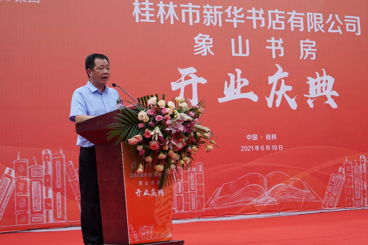 6月19日上午10时18分,桂林万福广场上鲜花簇拥、彩旗招展、人头攒动,桂林市新华书店有限公司(以下简称桂林市公司)“象山书房“开业庆典仪式正式开始。