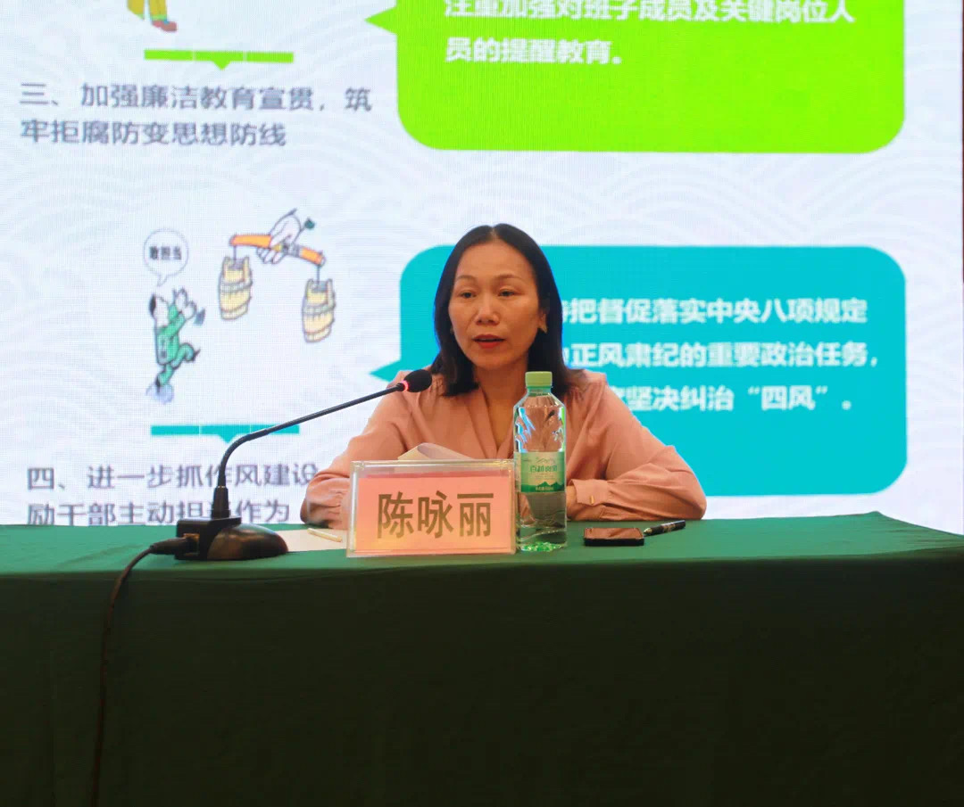 25日,纪委副书记、纪检监察室主任陈咏丽在全面总结回顾2020年纪检监察工作的基础上,结合当前形势,对2021年纪检监察工作进行了安排部署,要求集团股份公司全体纪检监察干部以更加昂扬的斗志、更加执着的干劲,扎扎实实做好各项工作,不断推进集团股份公司全面从严治党、党风廉政建设和反腐败工作向纵深发展,为集团股份公司的高质量发展作出新的更大贡献。