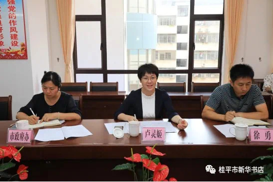 6月29日,桂平市副市长卢灵姬率队到桂平市新华书店有限公司(以下简称桂平市公司)指导工作。桂平市政府办、桂平市工业信息化和商务局、桂平市统计局等领导陪同,桂平市公司支委、经营管理班子及财务部门相关人员参加座谈会。
