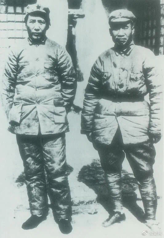 1937年7月7日,卢沟桥事变爆发。8日,中共中央通电全国,号召结成民族统一战线抵抗日本侵略者。图为1936年冬毛泽东和朱德在陕北。