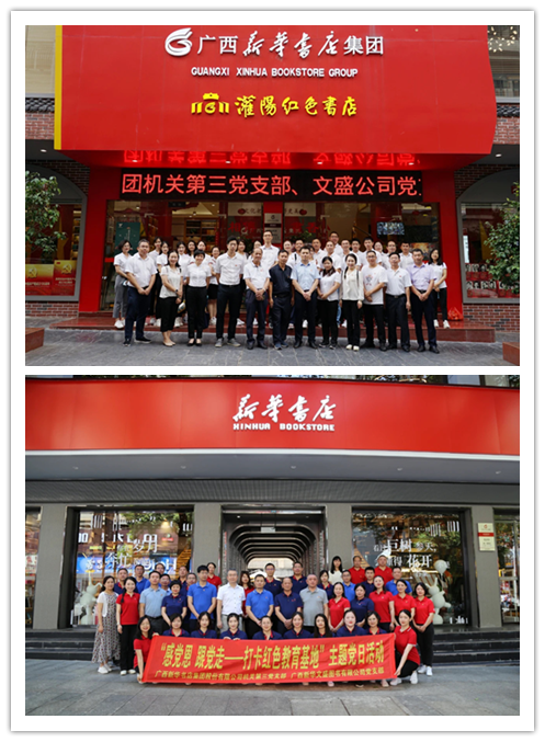 本次活动还组织全体同志到灌阳红色书店、全州高中校园书店、全州县新华书店观摩学习,深入交流门店转型升级的成果和经验,并与桂林市新华书店有限公司党总支、全州县新华书店有限公司党支部联合开展支部共建活动,通过观看微视频《百年风华》、诗歌朗诵、合唱《没有共产党就没有新中国》《歌唱祖国》等红色歌曲赞颂党恩,进一步激发党员的政治热情,增强党建活力,推动党史学习教育走深走实。