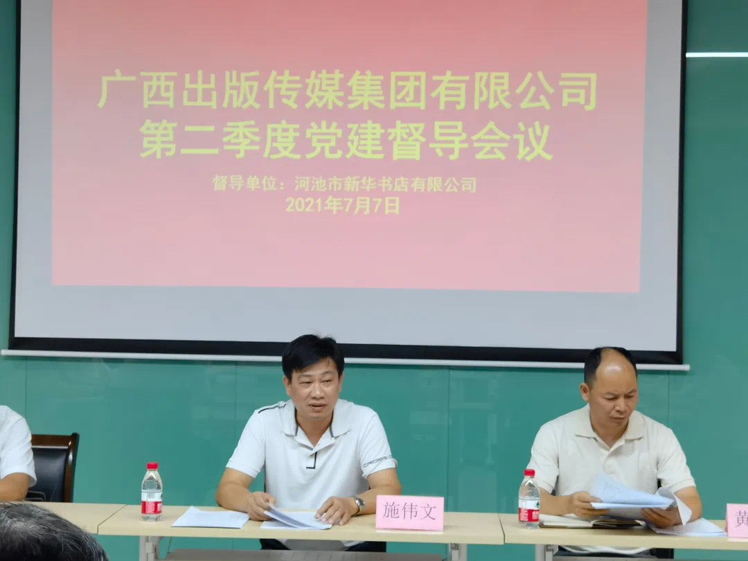 7月7日,广西出版传媒集团有限公司副总经理施伟文率党建督导第八小组,到河池市新华书店有限公司(以下简称河池市公司)进行第二季度党建督导工作。