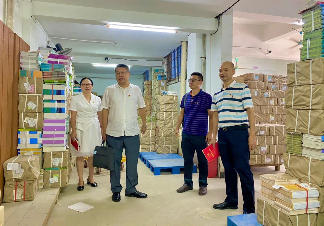 张艺兵到仓库调研,详细了解贺州市公司教材教辅发行情况
