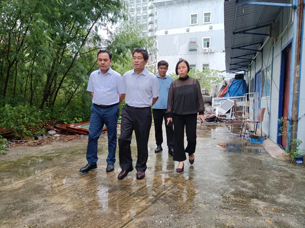 会前,韦家武先后对仓库、办公区域进行生产设施设备检查,就存在的问题提出了整改意见。会后,韦家武一行到北海四川路书城项目工地进行考察。