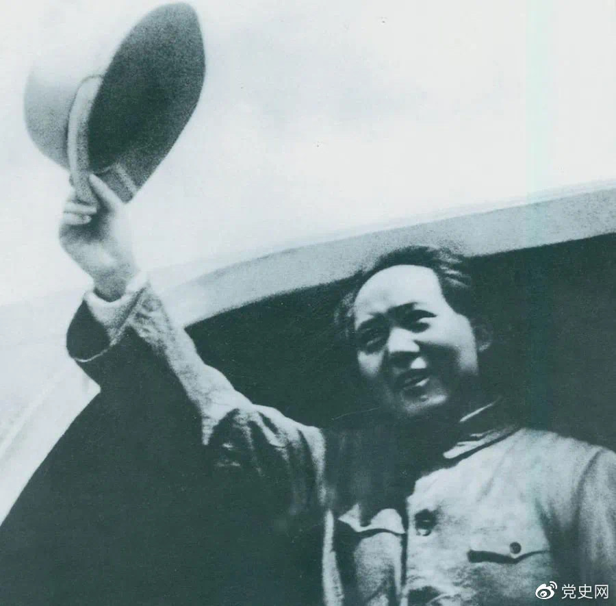 1945年8月28日,毛泽东飞赴重庆时,向前来欢送的延安军民挥手告别。