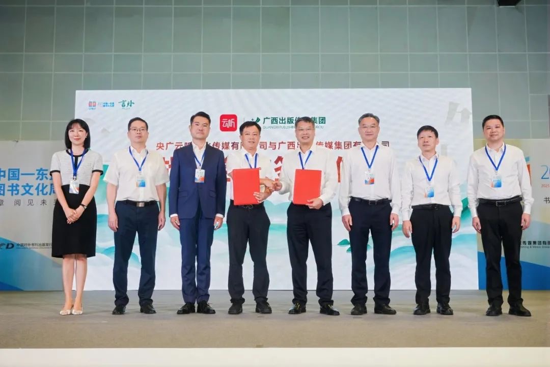 云听&广西出版传媒集团战略合作协议签署暨《言外》栏目开机仪式。7月3日上午,央广云听&广西出版传媒集团签署战略合作协议,《言外》栏目举办开机仪式。依托漓江文学奖的文化影响力,广西出版传媒集团联合央广云听、央广网全媒体平台资源,立足广西丰厚的民族文化土壤,拓展中国—东盟人文交流视野,策划推出一档人文深度对话IP栏目——《言外》,邀请文化学者、知名作家等展开深度对话,探寻文字之外的精神共振、言语之外的思想深度。据悉,栏目将邀请第二届漓江文学奖虚构类奖获得者刘楚昕进行首期访谈,于7月5日在漓江书院进行录制。