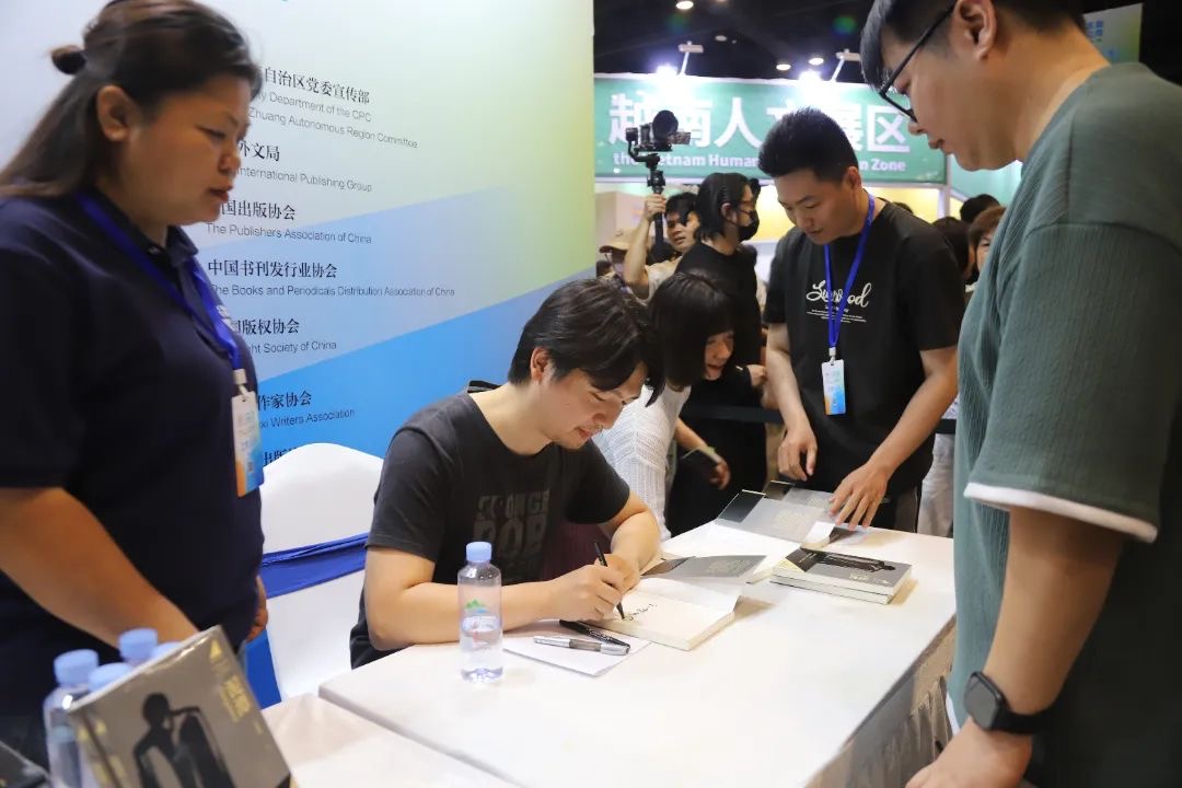 上午10点,在广西作协主席东西的作品专区举行图书签售活动,读者们手持东西的作品,排起了长队,热切期待着能与他近距离交流,并获得他的亲笔签名。